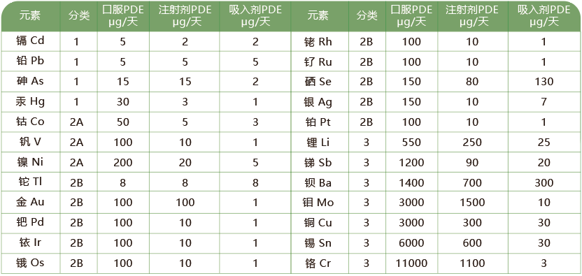 元素杂质的每日允许暴露量